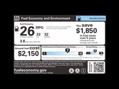 В мае 2011 года власти США утвердили новый образец стикеров (PDF), который с 2013 года в обязательном порядке появятся на всех новых автомобилях в Америке. На этих наклейках указана масса полезной информации, включая среднее потребление топлива по трассе, городу и в смешанном цикле. Для электромобилей указывается количество потребляемых киловатт-часов на 100 миль и время подзарядки.